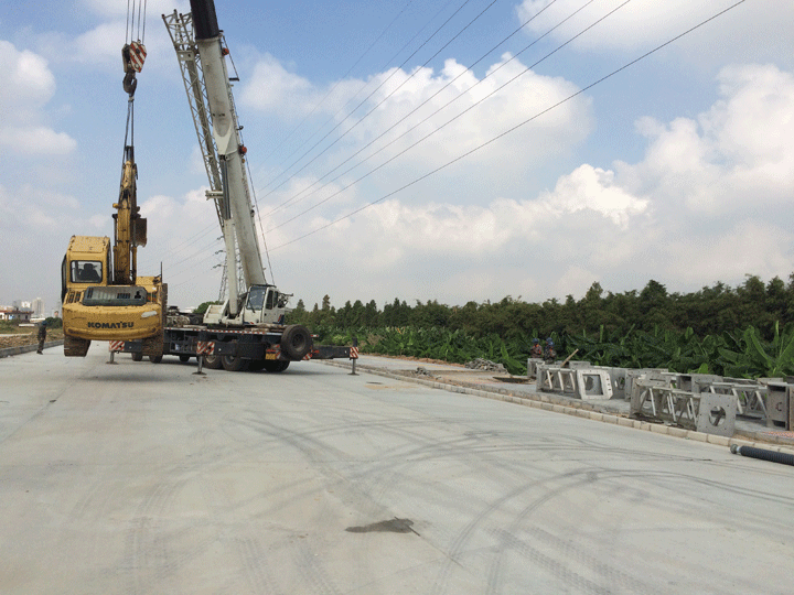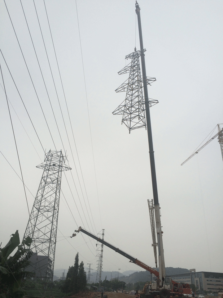 110KV半逸甲乙線N57直線塔,因塔附件道路施工,造成地形變化,基礎(chǔ)嚴(yán)重?fù)p壞(有附圖),鐵塔有1米傾斜。N57塔嚴(yán)重影響中山火炬開發(fā)區(qū)生產(chǎn)、生活及交通安全(距離路邊15米)。我公司接到任務(wù)后,火速調(diào)配所有ERS搶險(xiǎn)設(shè)備及搶險(xiǎn)人員,從剛剛順利完成任務(wù)的湛江(臺風(fēng)“彩虹”影響地)連夜趕到現(xiàn)場(中山),兩地相距600公里。到現(xiàn)場后充分發(fā)揮我公司團(tuán)結(jié)、和諧的實(shí)力僅用兩天時間順利完成黨交給我們的任務(wù)(勘察、設(shè)計(jì)、材料調(diào)配、組塔、放緊線)。